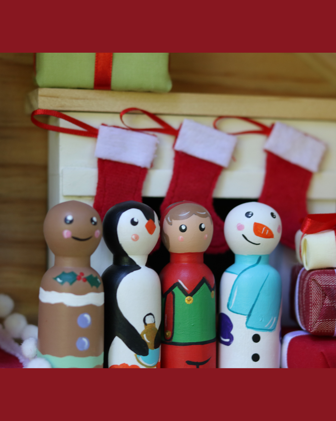 Incluye: Pingüino, Elfo, muñeco de nieve y galleta de jengibre