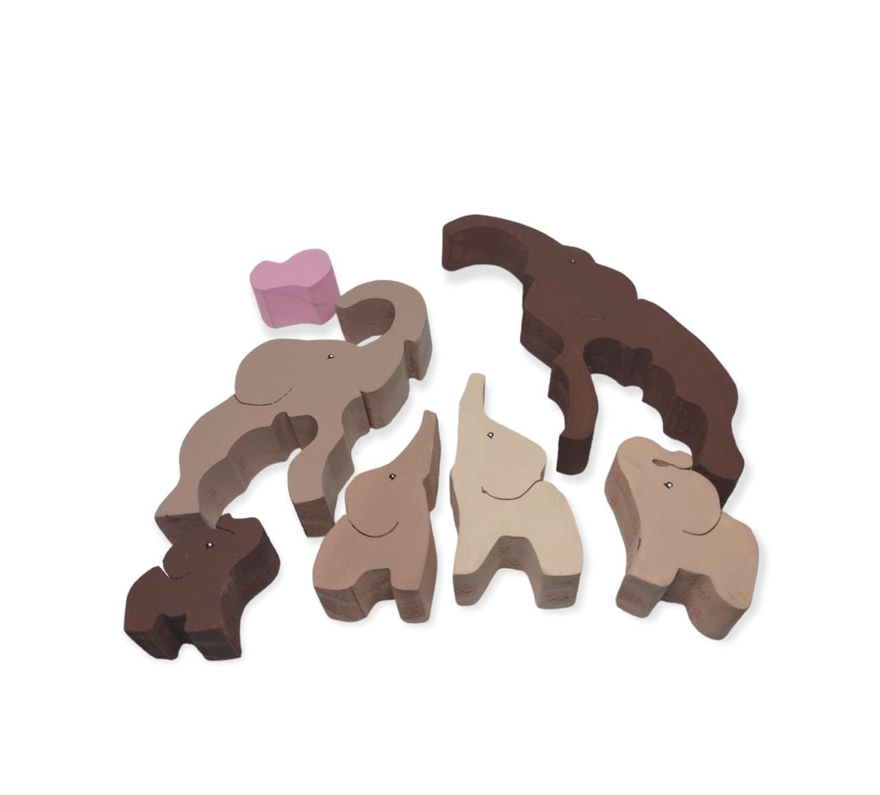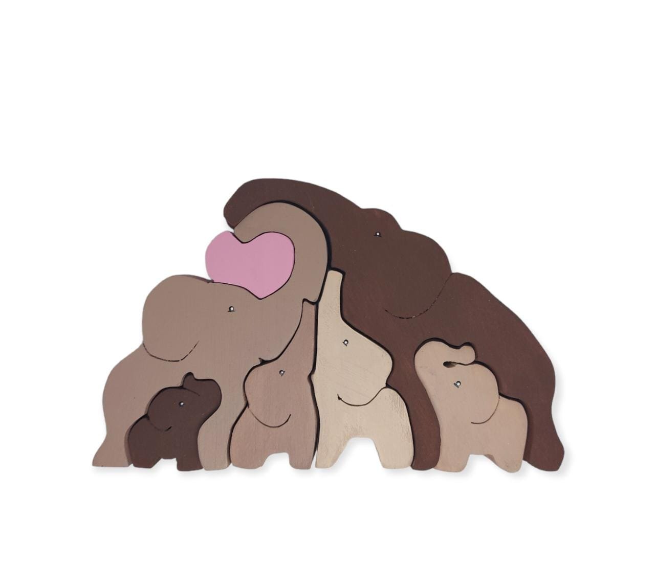 Together es un rompecabezas de elefantes, que contiene 7 piezas de madera que representan los vínculos familiares, permite que los niños y las niñas estimulen su motricidad fina. Además, por ser un juego pasivo les ayuda a explotar su imaginación y creatividad.